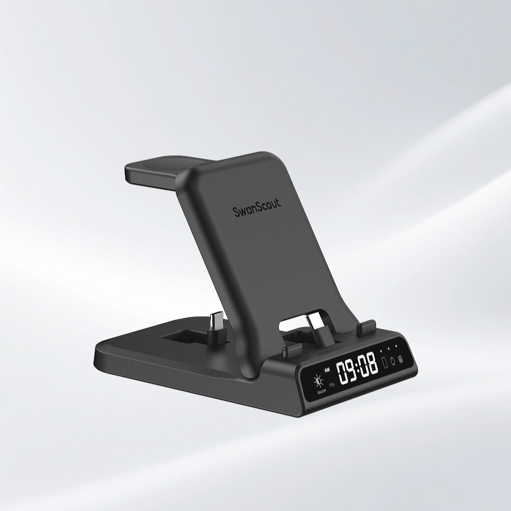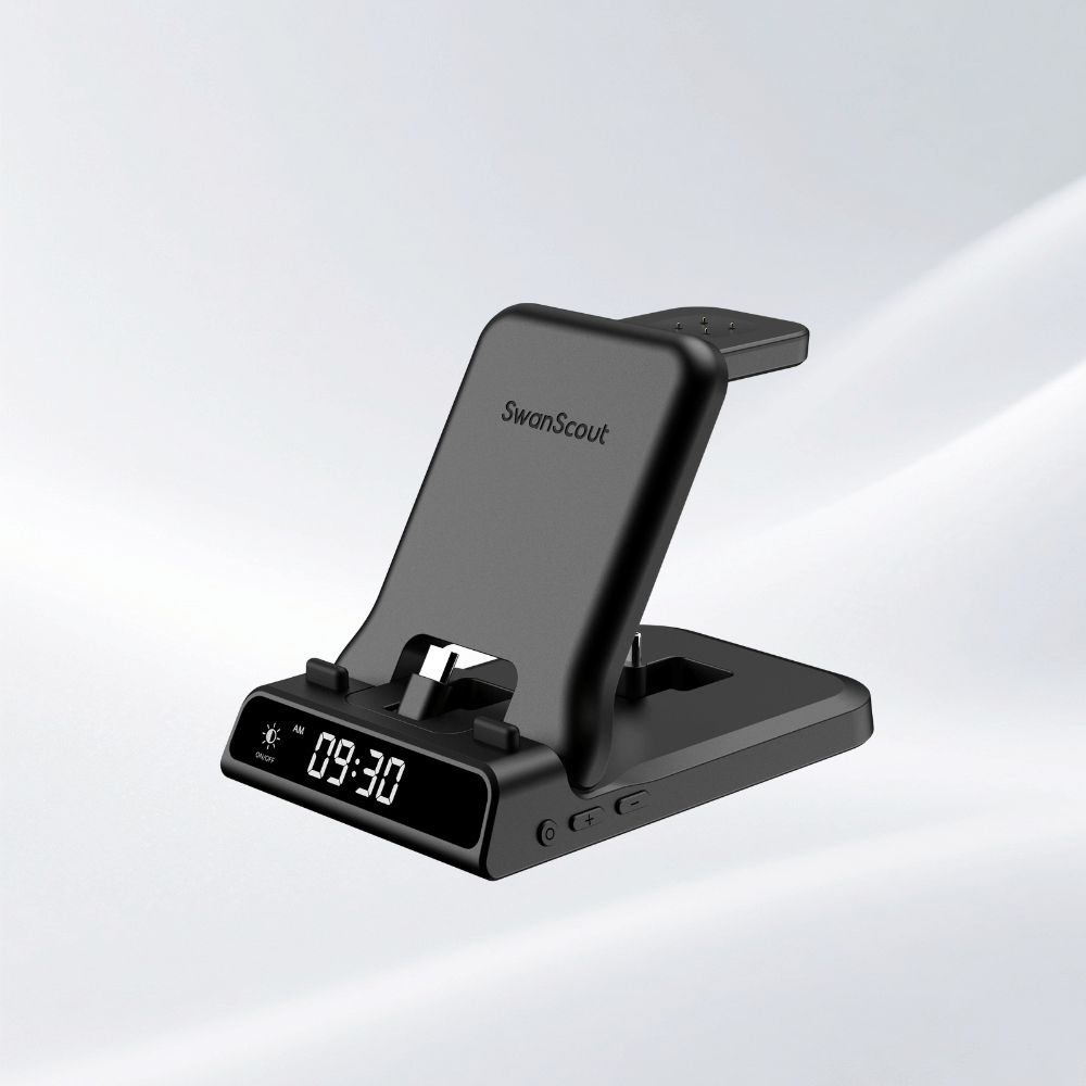 SwanScout’s 3-in-1 charging station supports non-Samsung devices compatible with wireless charging standards (e.g., select iPhones or Android phones and wireless earbuds) for the phone and earbud areas, but the watch area is exclusive to Galaxy Watch. For magnetic charging, Samsung phones require a magnetic case to ensure proper charging.