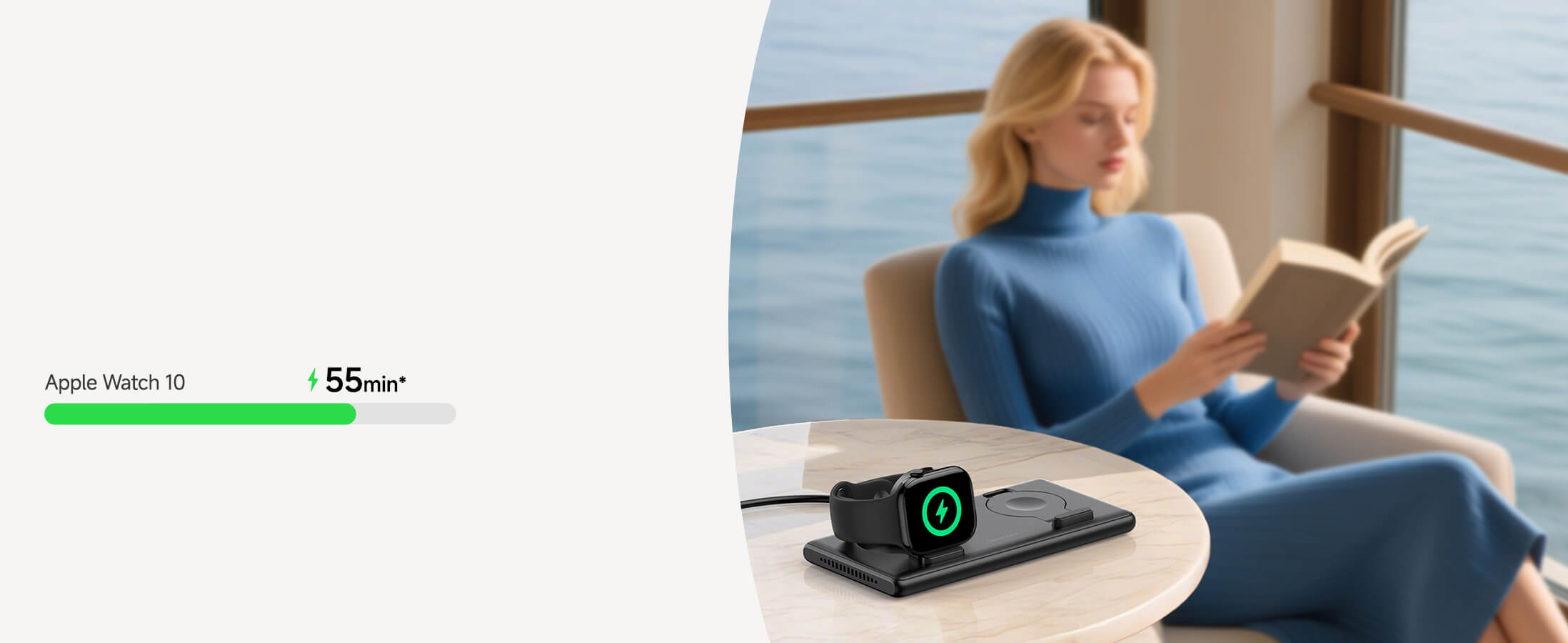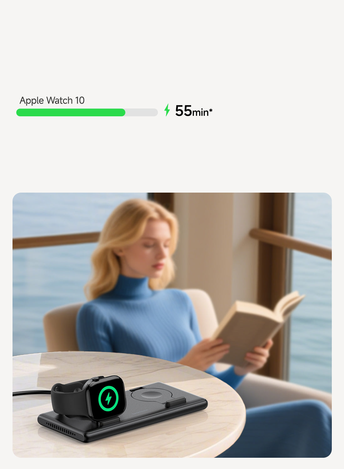 • Προσφέρει γρήγορη φόρτιση 5W – από 0% σε 80% σε 55 λεπτά για το Apple Watch Series 10 (46mm).