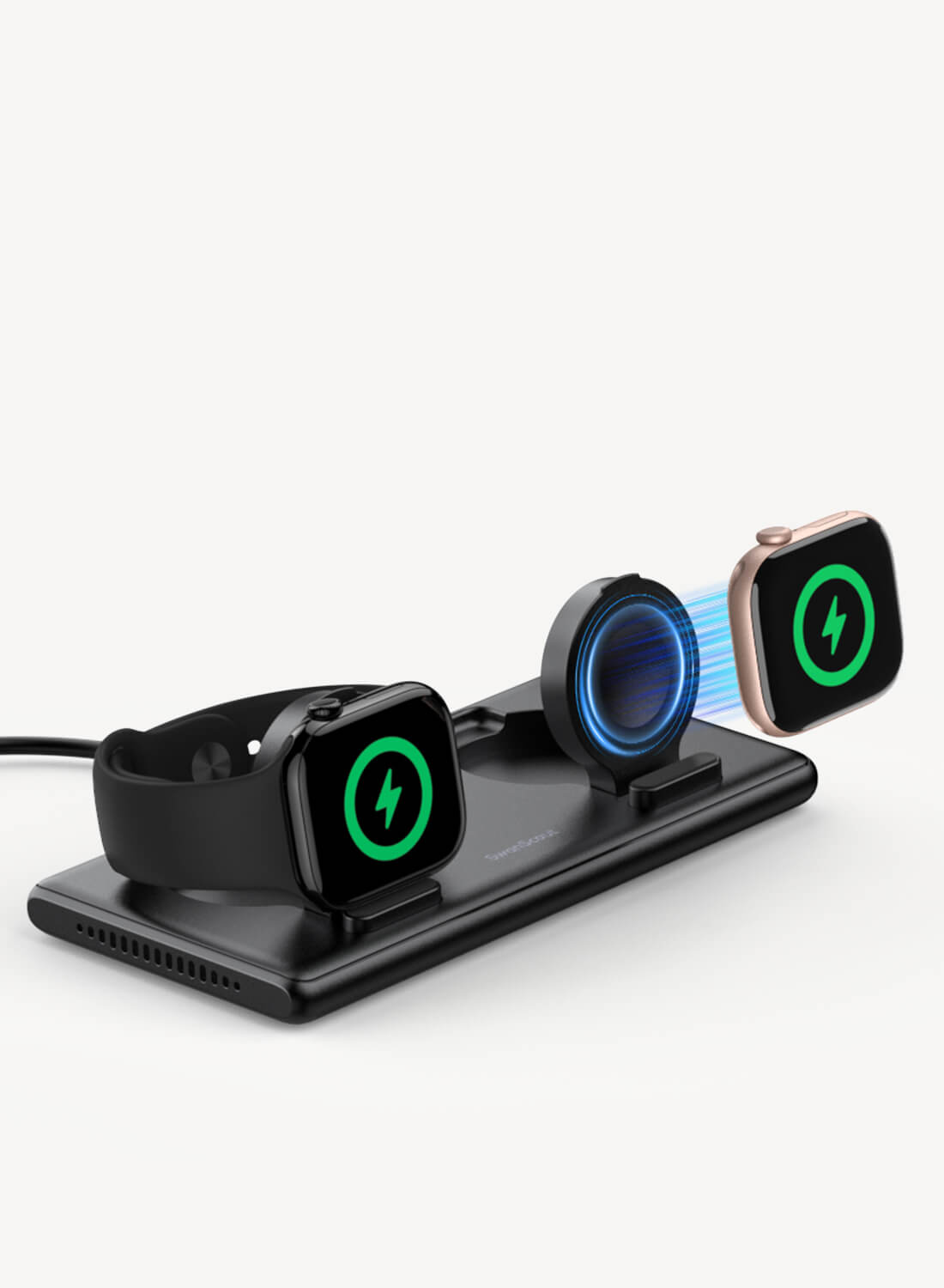 • Φορτίζει δύο Apple Watch ταυτόχρονα — ιδανικό για ζευγάρια ή οικογένειες.