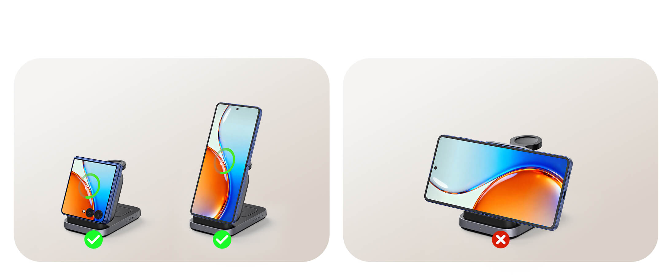 Only supports foldable and vertical charging modes. Do not charge in a horizontal position.