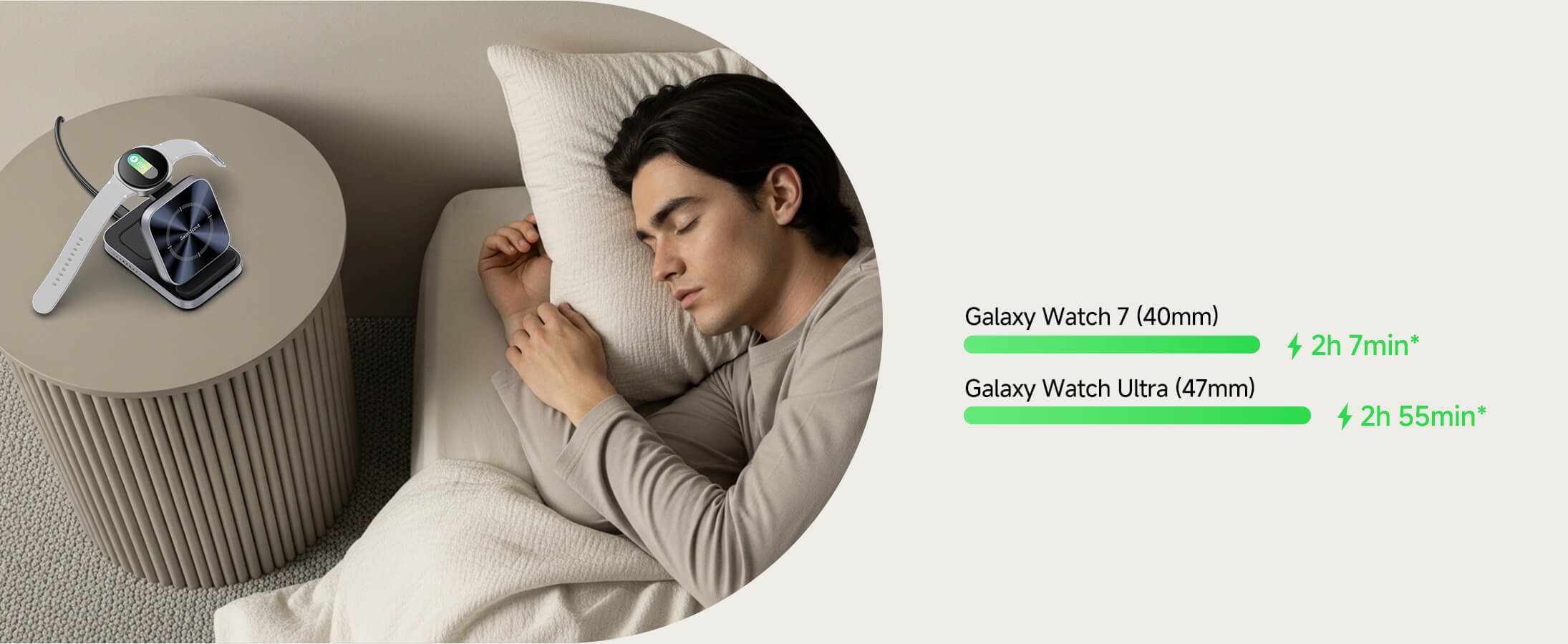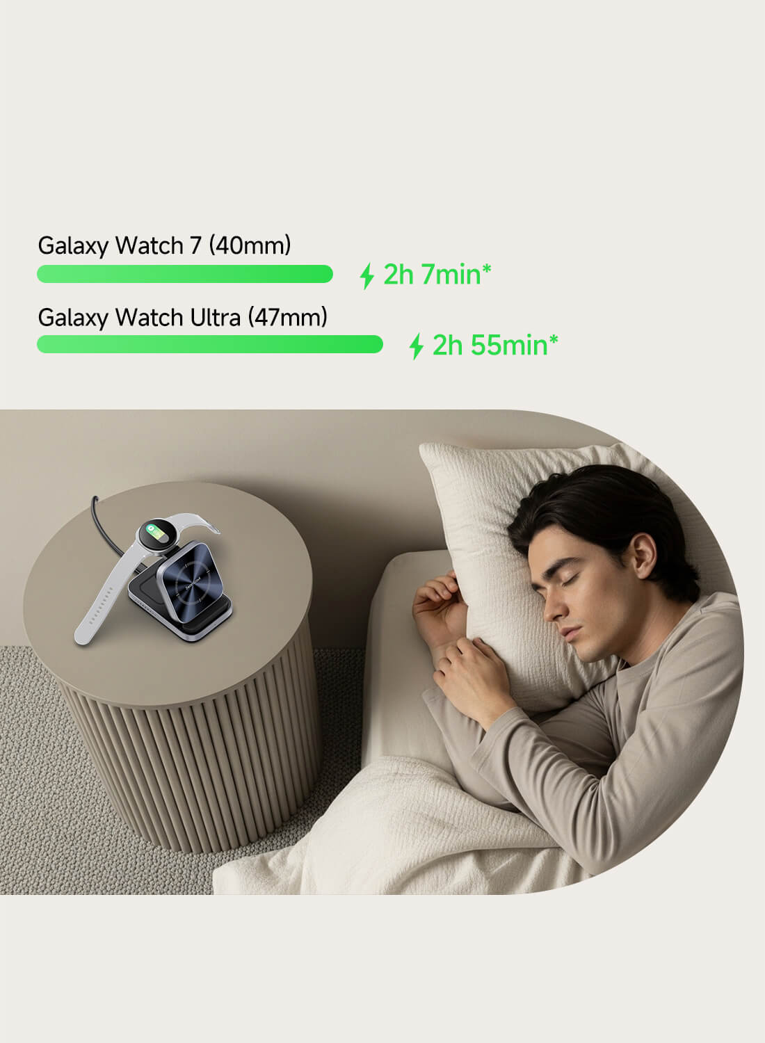 SwanScout Wireless Charger for Samsung Z Flip 7/7 FE/6/5/4/3, 3-in-1 Charging Station for Galaxy Watch 8 Classic/8/Ultra/7/FE/6/5/4, SwanScout 713F (NO Adapter)