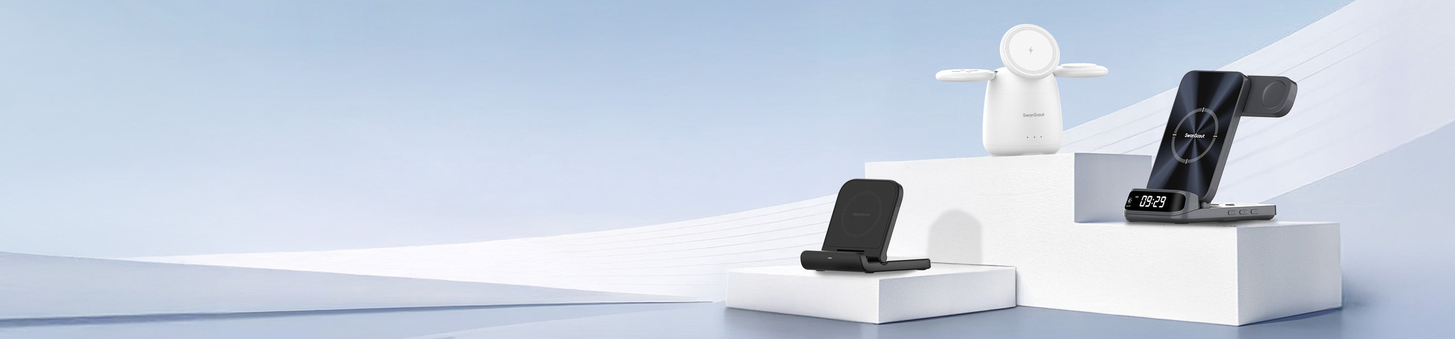 SwanScout 708SM - Samsung用3-in-1磁気ワイヤレス充電器(時計付き)