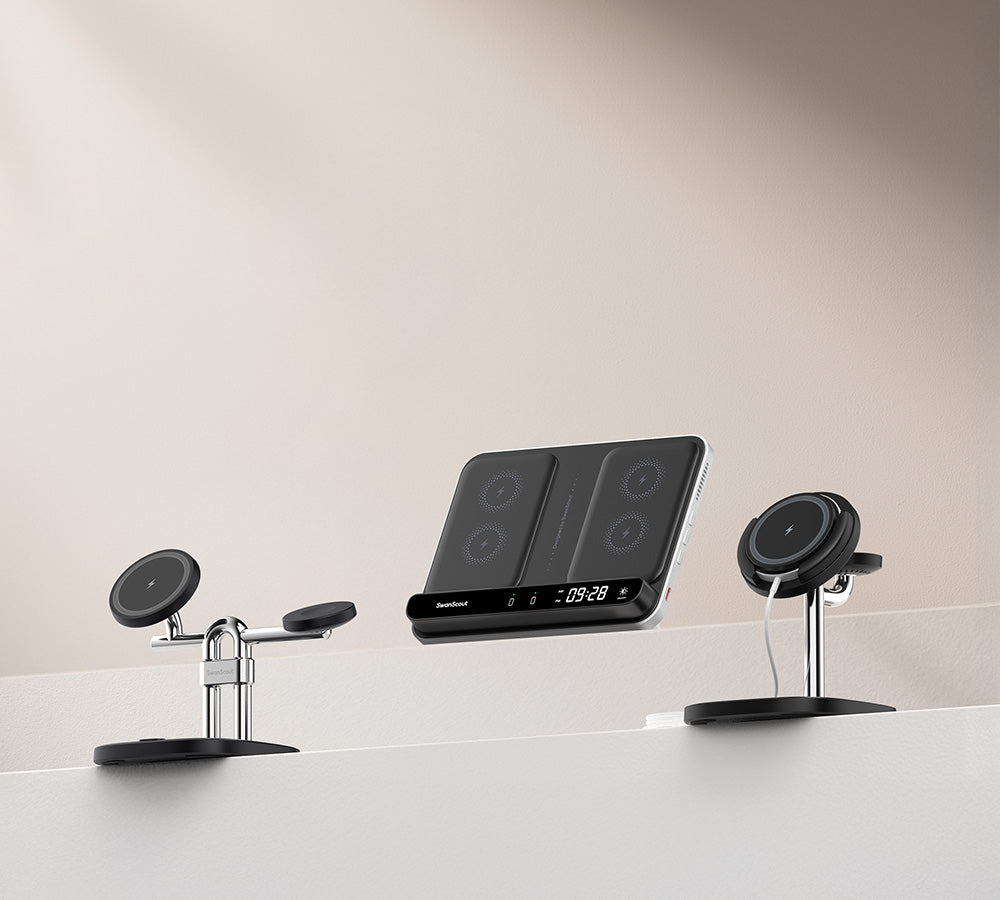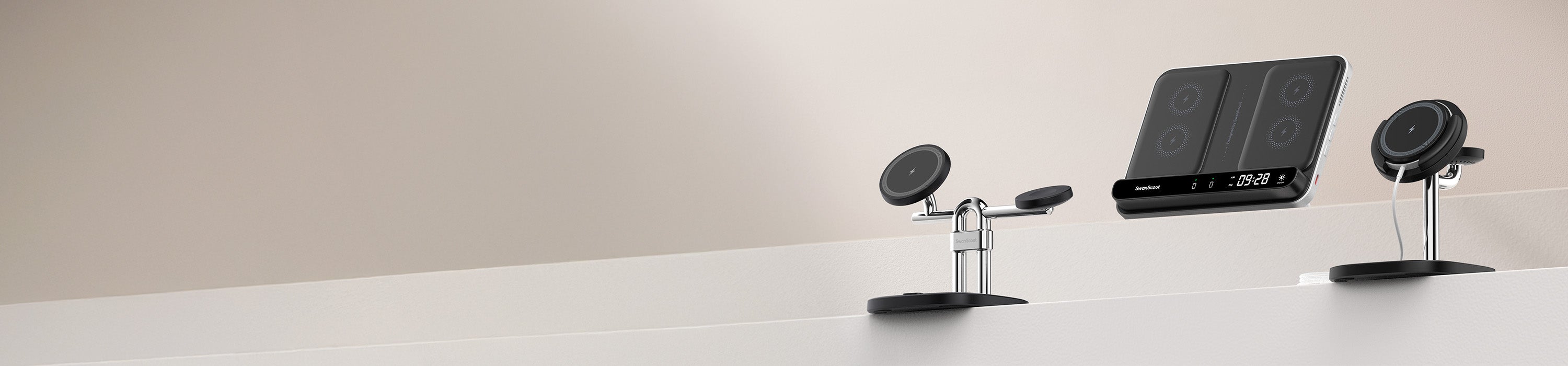 SwanScout の最新商品をご紹介 — より高速な充電、幅広い互換性、そしてあらゆるライフスタイルに対応するスマートワイヤレス充電器。