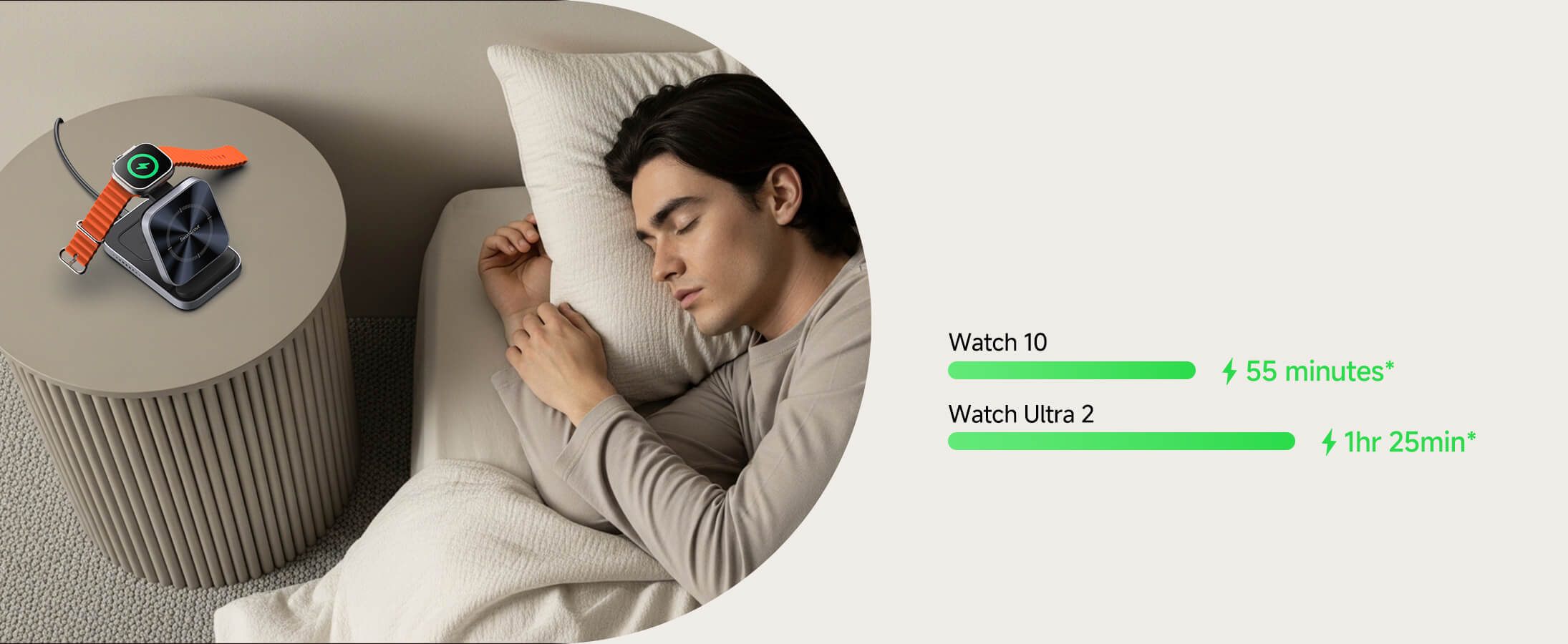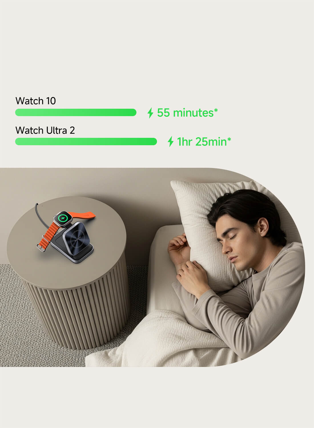 • Szybkie ładowanie Apple Watch: Zapewnia szybkie ładowanie 5W dla Apple Watch Series 7 i nowszych — naładuj Apple Watch Series 10 od 0% do 80% w zaledwie 51 minut.