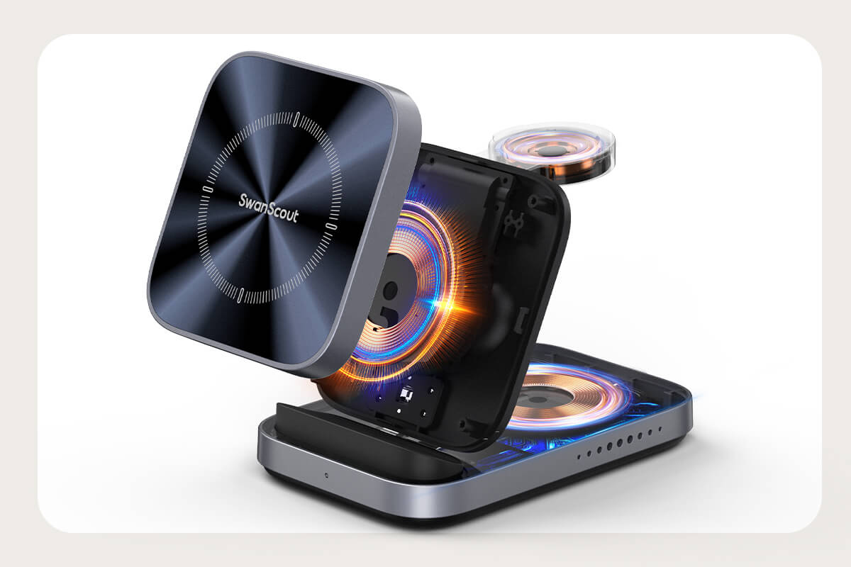 SwanScout 713A - Składana bezprzewodowa ładowarka 3 w 1 dla Apple