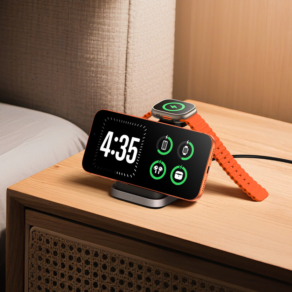 Ładuje jednocześnie trzy urządzenia Apple, utrzymując porządek na biurku
