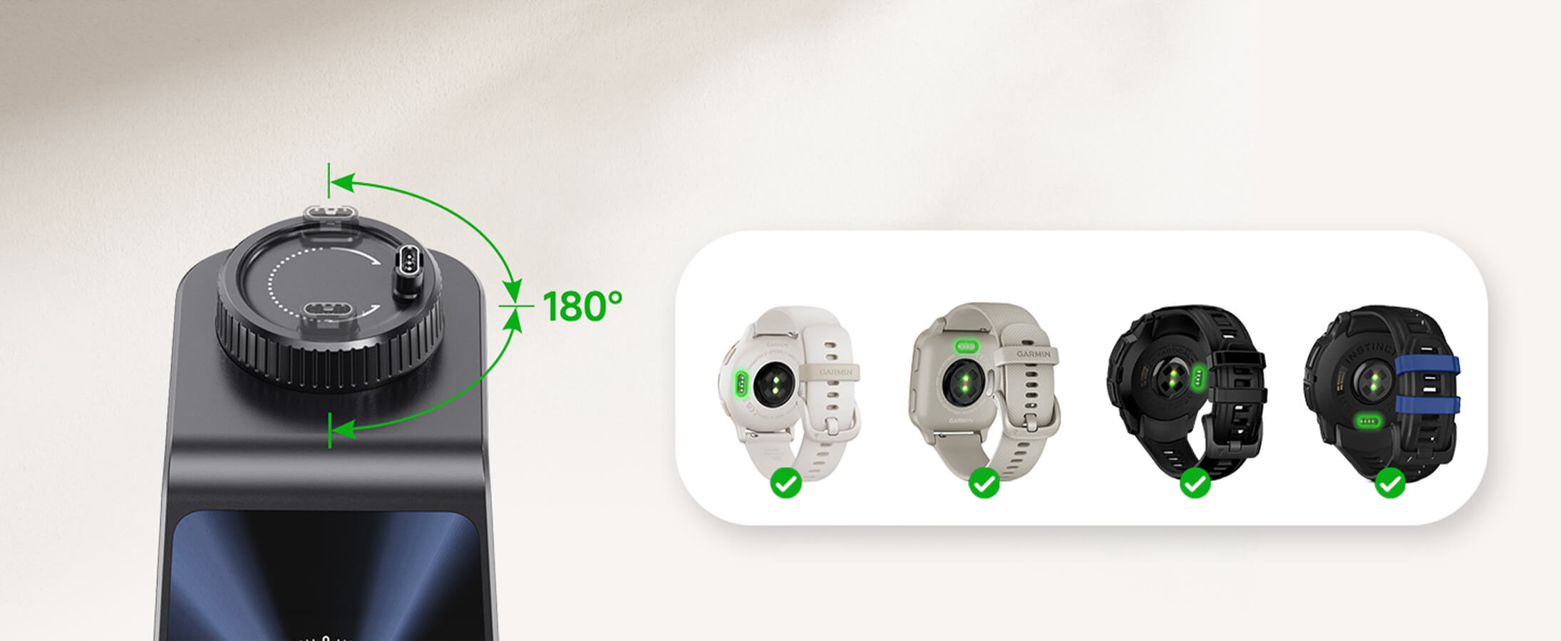 • Carregador de relógio rotativo: Possui um carregador de relógio rotativo de 180°, perfeito para diversos modelos de relógios Garmin.
