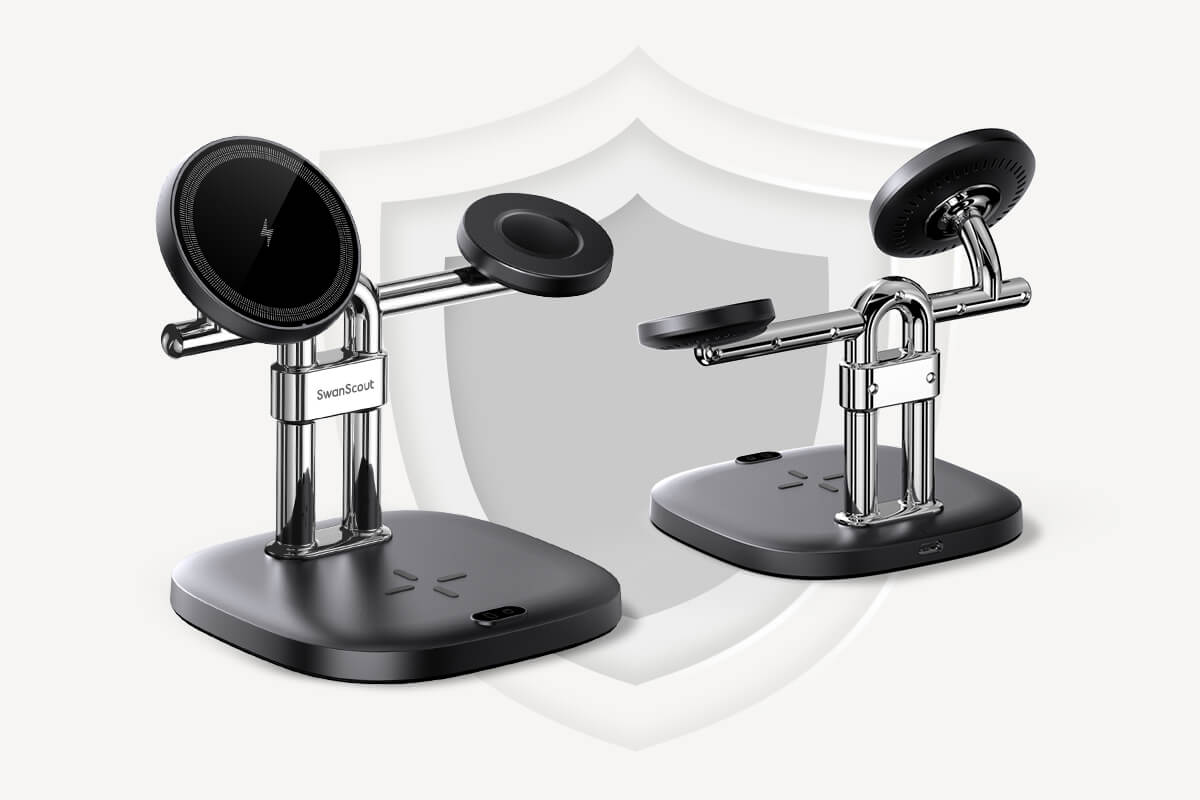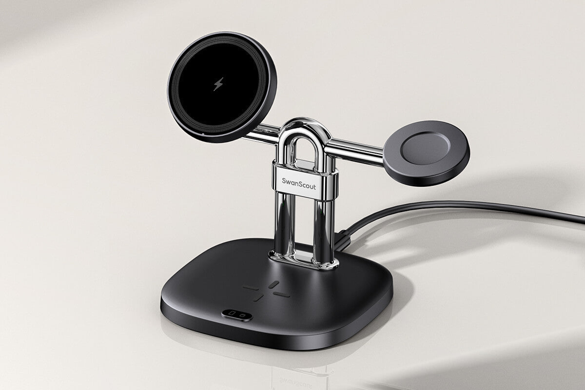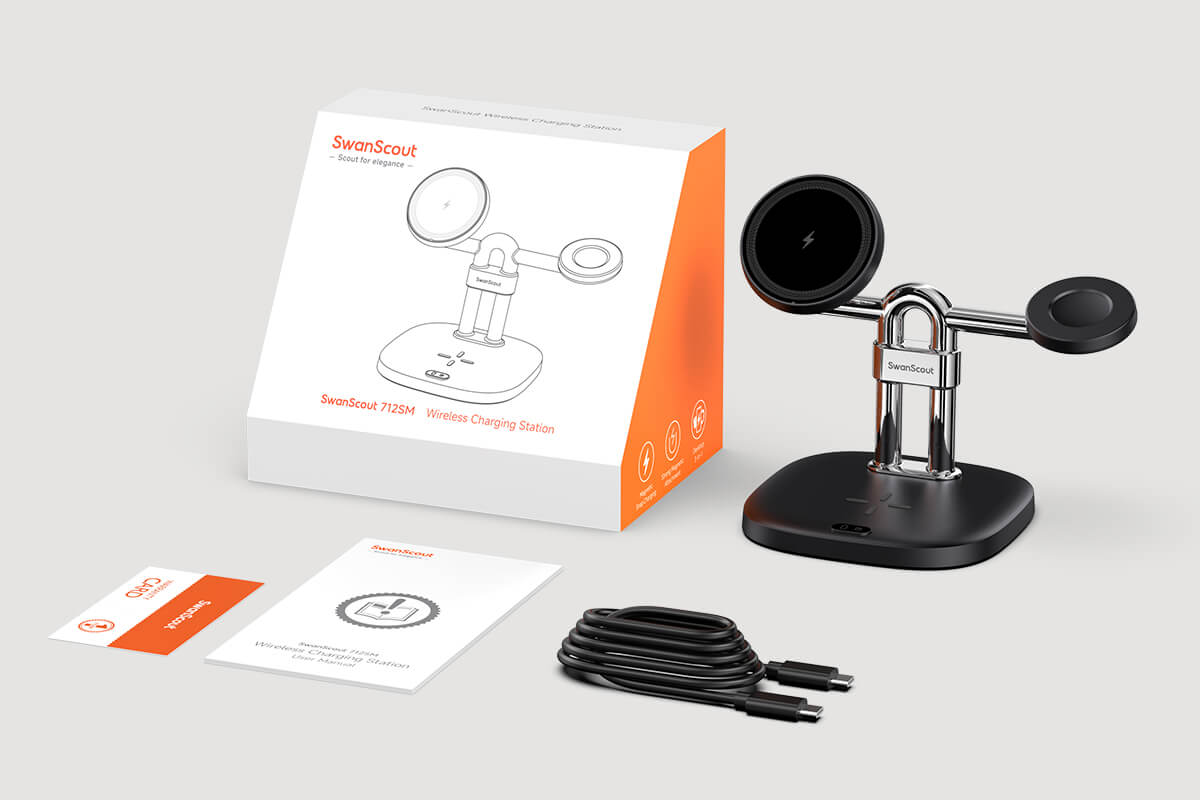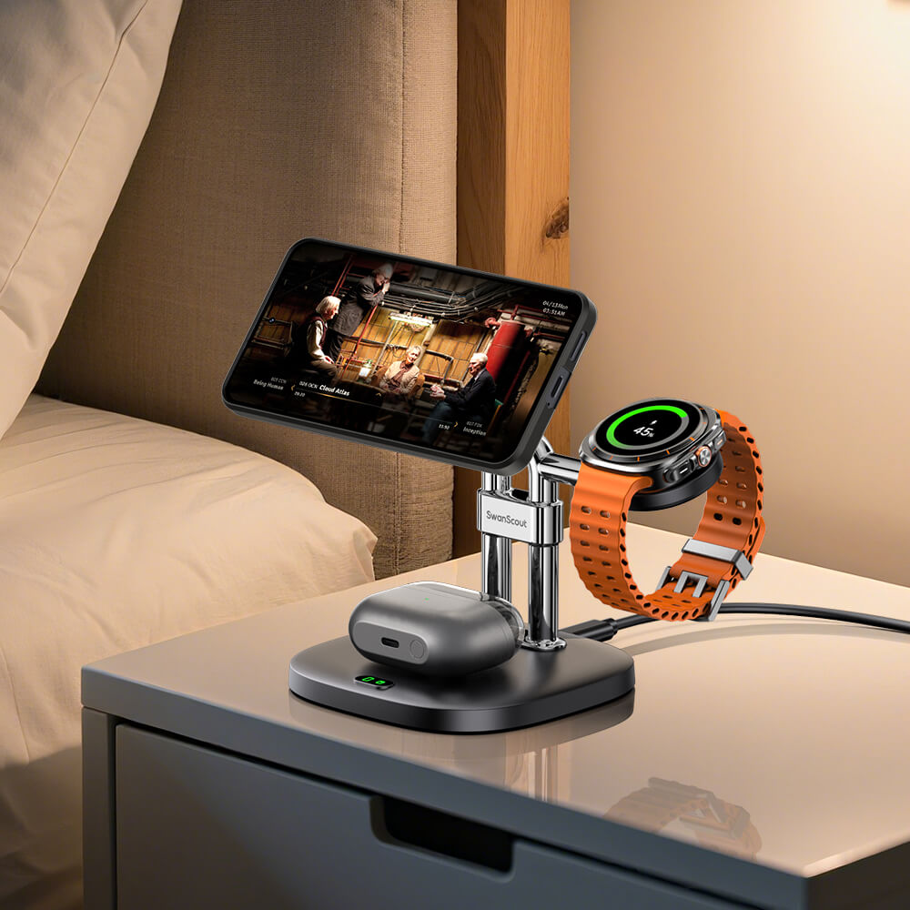 SwanScout 712SM – Estação de carregamento sem fio magnética 3 em 1 para Samsung