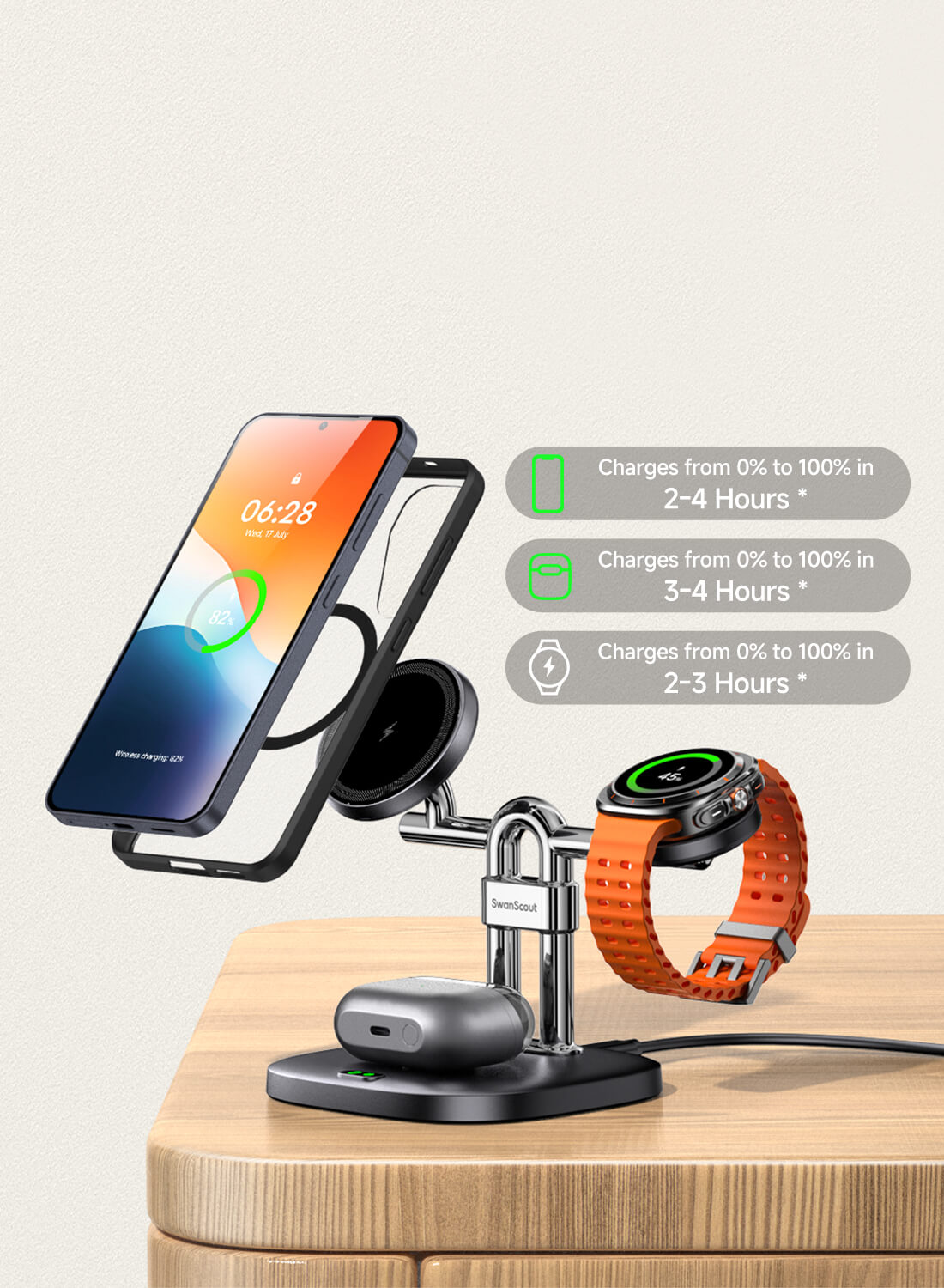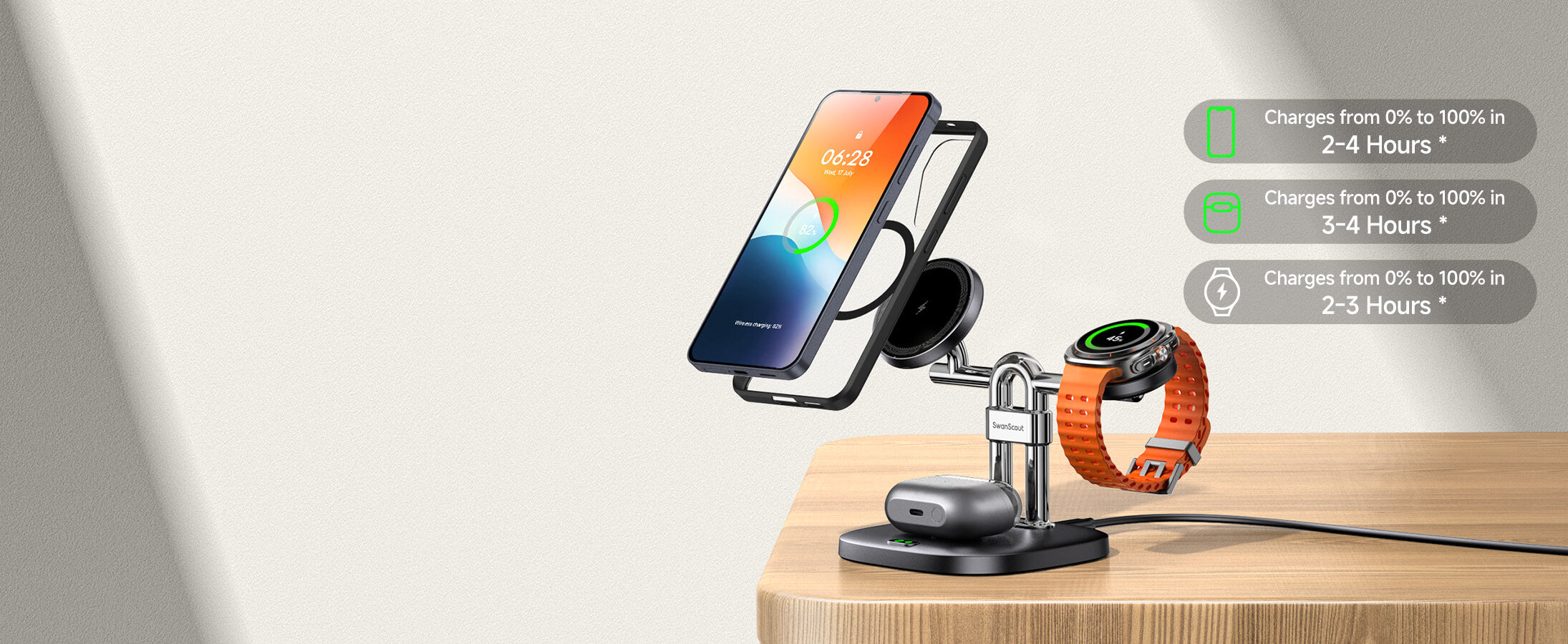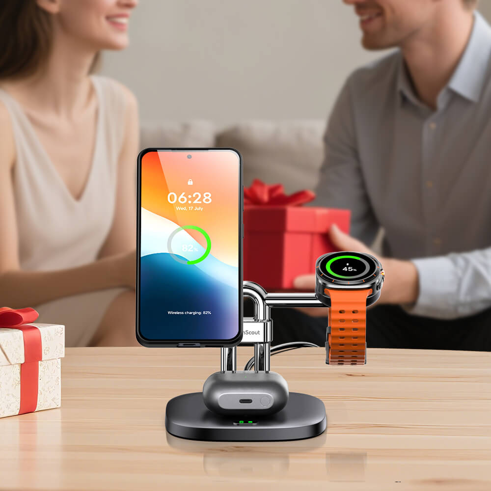 SwanScout 712SM – Estação de carregamento sem fio magnética 3 em 1 para Samsung