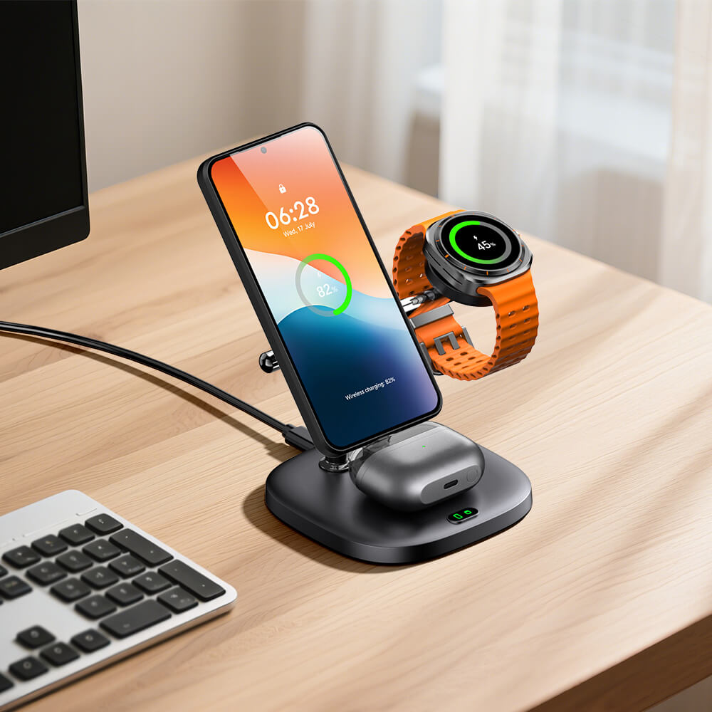 Suporte de Carregamento Magnético 3-em-1 para Dispositivos Samsung