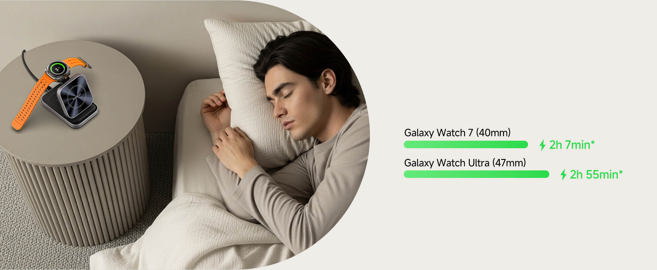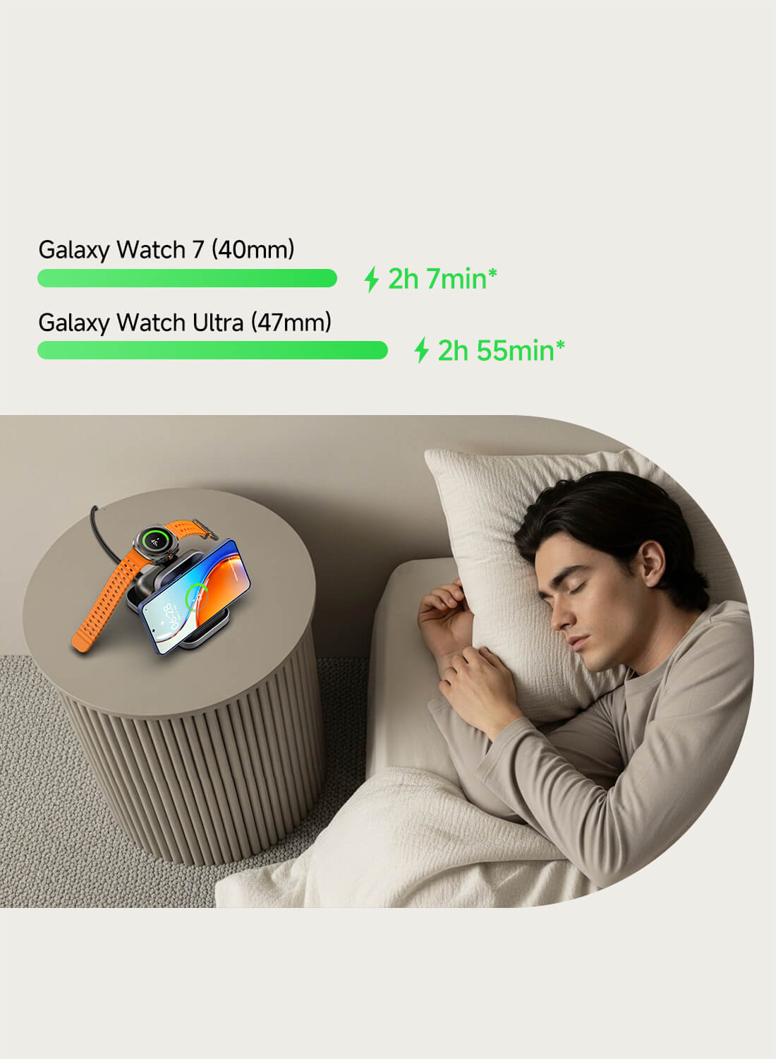 SwanScout 713S 3-in-1 접이식 무선 충전기 (삼성 S25 Ultra/S25/S24/S23/S22/Z Flip, 갤럭시 워치 8/7/Ultra/6/5 & 이어버드용, 가로 충전 전용, 어댑터 미포함)