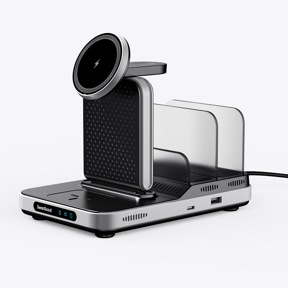 Economisește 20% SwanScout 304M is a sleek iPhone charging station that simplifies power management for daily Apple device users.With iPhone wireless charger fast charging, the SwanScout 304M delivers quick, reliable energy without overheating.