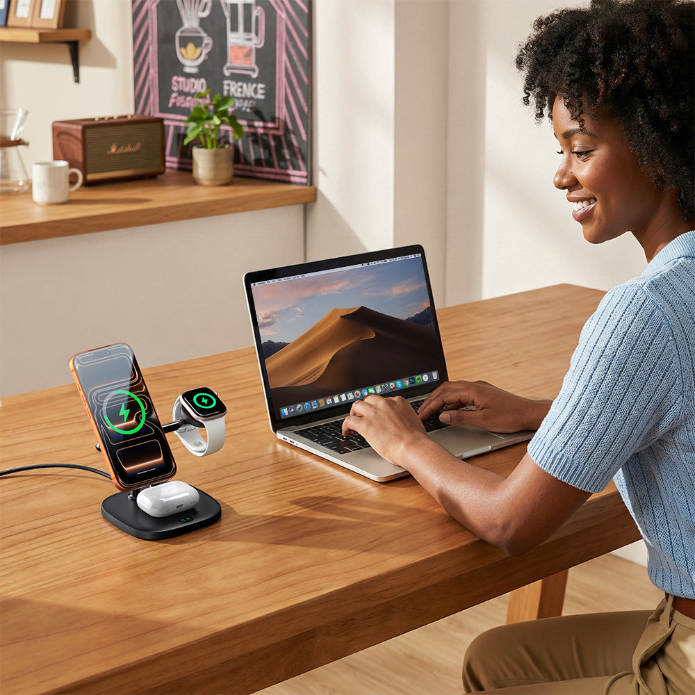„Ert märke gör livet enklare! Att kunna ladda tre enheter samtidigt är en riktig räddare för mig — jag älskar den här funktionen.”