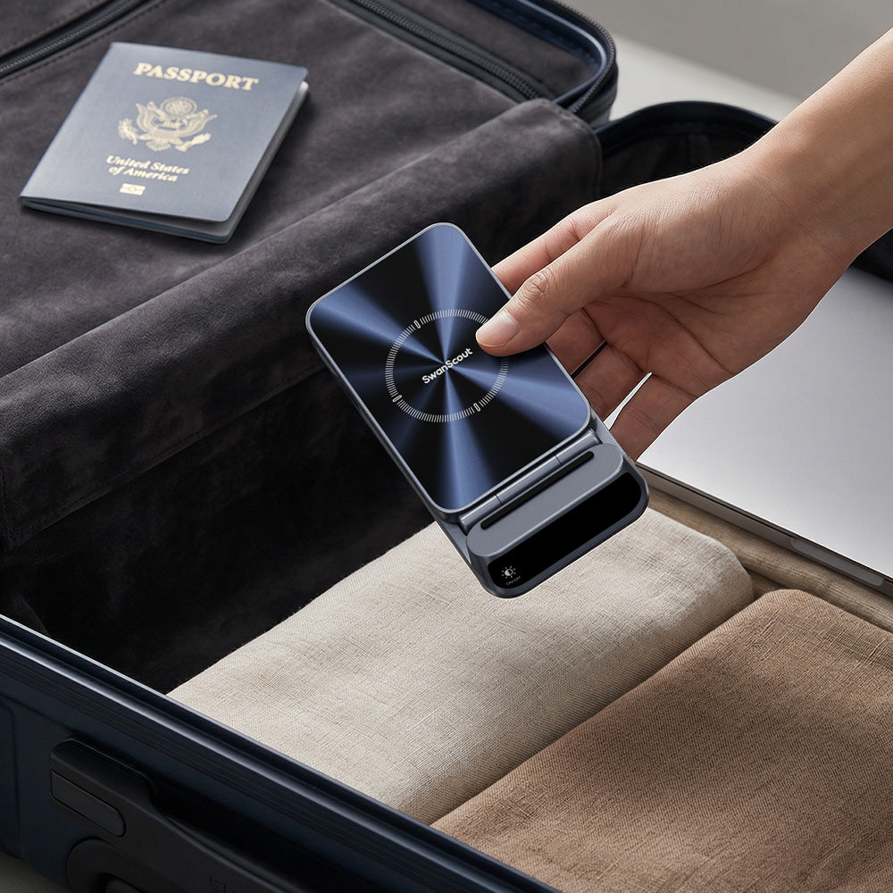 SwanScout grundades av Julian Li 2021, efter ett decennium i teknikbranschen. Vår första trådlösa tre-i-ett-laddklocka omdefinierade tillbehör med förfinat hantverk.
