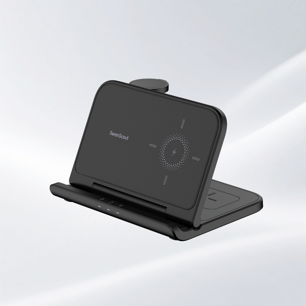 SwanScout 702S - Trådlös laddstation för Samsung med klockaSwanScout 702S | 3 In 1 Foldable Wireless Charging Station for Samsung Devices