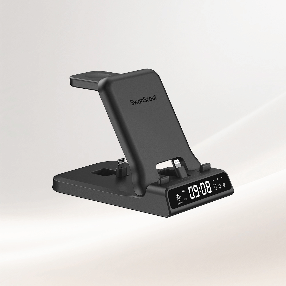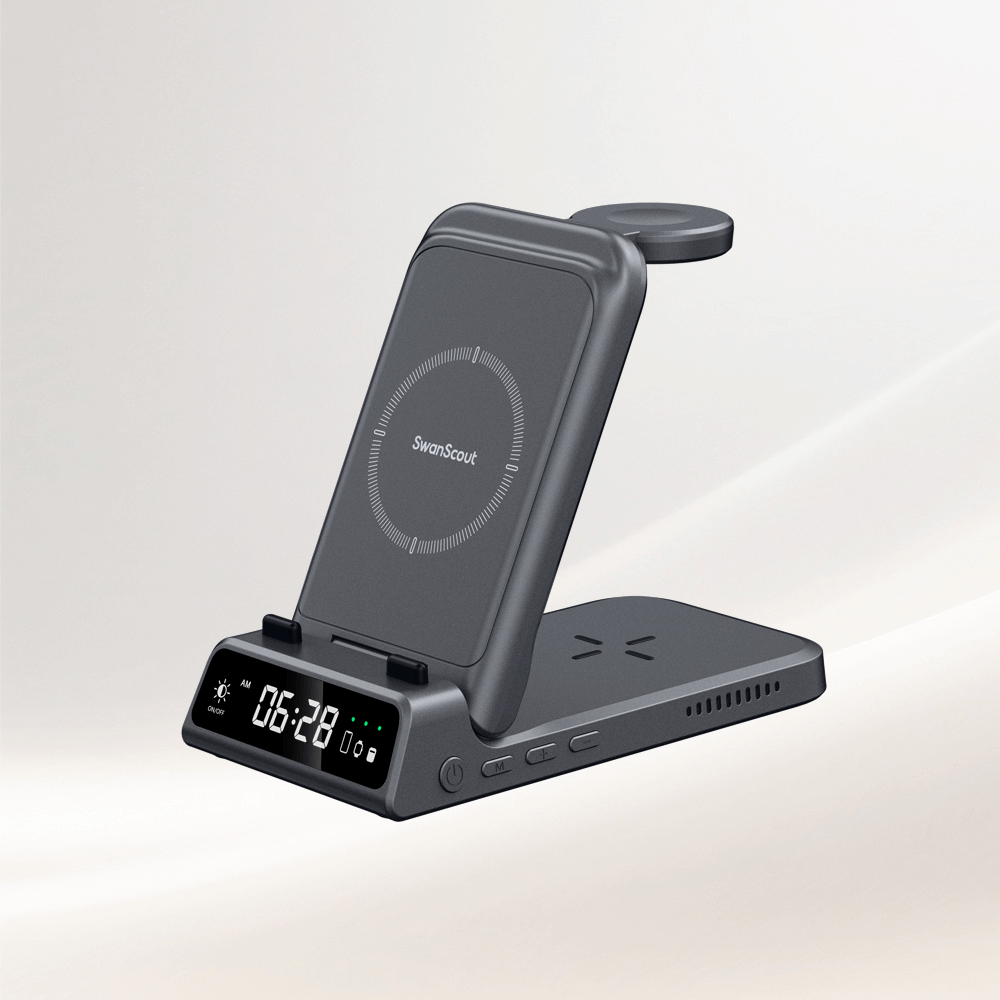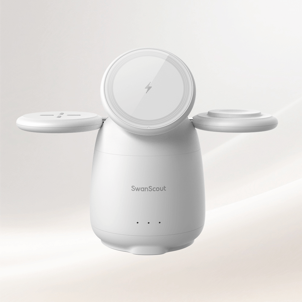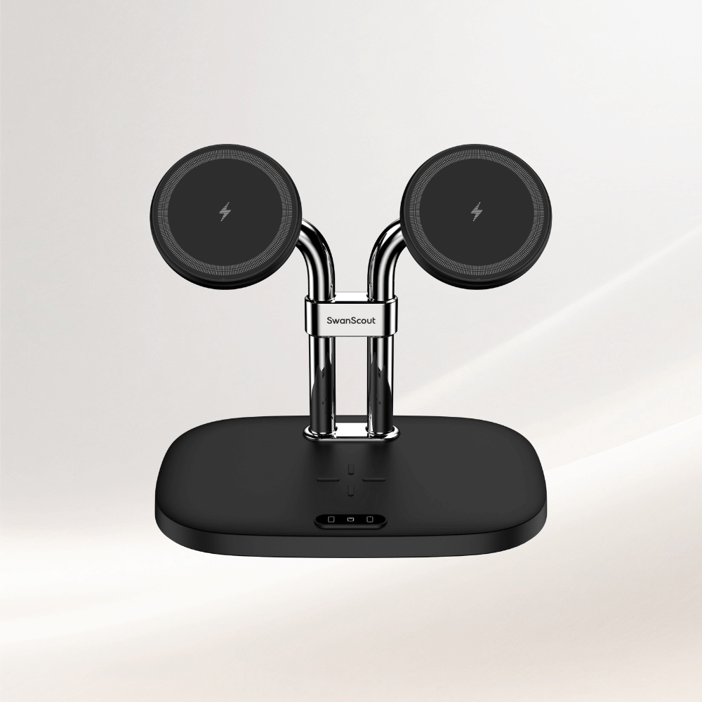 SwanScout 的 Apple 相容無線充電器採用多線圈架構和精確的排列,可支援支援 MagSafe 的 iPhone、Apple Watch Series 10 至 Ultra,以及 Qi 相容的 AirPods。這些充電器專為同時充電與最佳化電力分配而設計,可消除纜線雜訊,同時維持裝置間的穩定輸出。適用於家庭和辦公室,提供專為 Apple 生態系統量身打造的高效、有序電源。